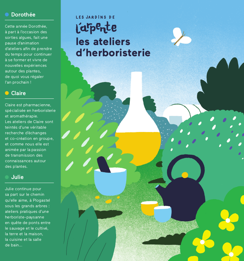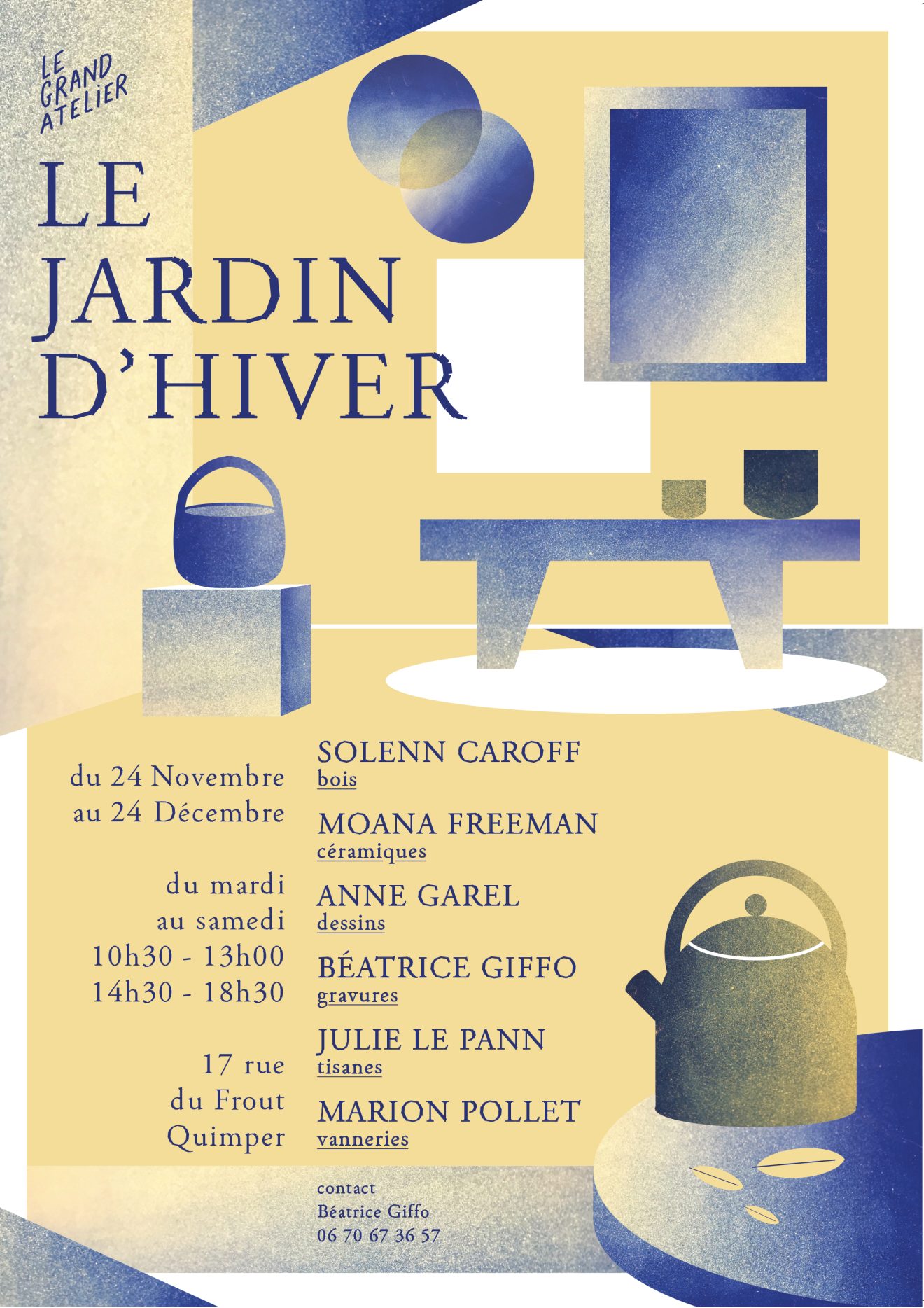 Nous n'allons pas tarder à ouvrir les portes de notre Jardin d'hiver à rue du Frout à Quimper, ça va être magnifique : les artistes et artisanes qui seront réunies là pendant un mois parlent de terre, de racines, de bois et de feuillage, incroyable cabane perchée où l'on oublie ses repères. Julie y sera régulièrement pour vous accueillir avec une tisane chaude et toutes nos petites préparations au grand complet.