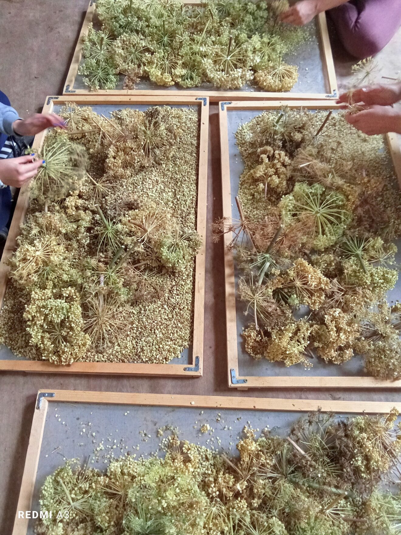 Il y a encore des choses à mettre sous la grange et ça réchauffe le cœur : verveine, menthe poivrée, quelques calendulas tardifs, cynorhodons etc. Et puis il y a les bocaux aussi, ratatouilles, thon, confiture de mûres, pestos frais... Notez d'ailleurs que si certain.e.s sont intéressé par un petit bocal de pesto frais il y en a à Kerouanquen !